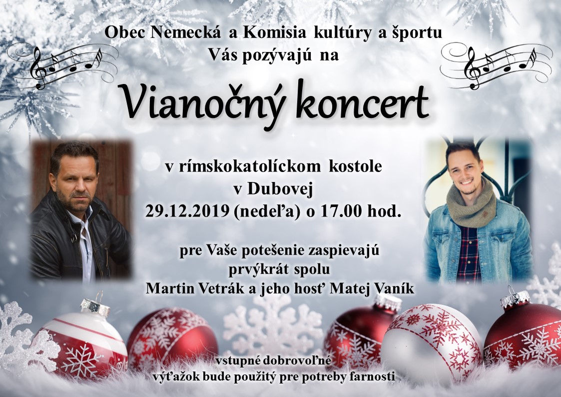 Vianočný koncert v Rímskokatolíckom kostole v Dubovej dňa 29.12.2019.